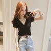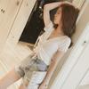 Summer New Korean Style V-neck Drawstring Navel-baring Sexy Short Top Women's Waist Design Slim Short-sleeved T-shirt — buy online with free worldwide shipping!