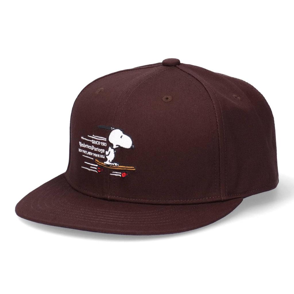 X PEANUTS Collaboration Flat Visor Baseball Cap Snoopy Hat [Manhattan Portage] (061 Brown) — buy online with free worldwide shipping!