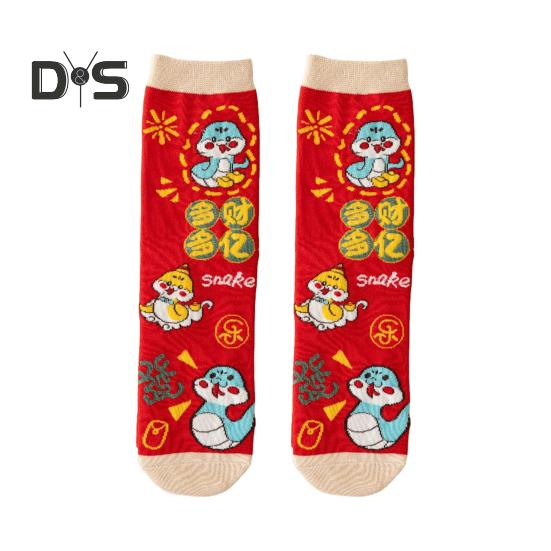 Showcasing a vibrant red cartoon pattern, these mid-calf socks strike the perfect balance between simplicity and style, adding a fun touch to any outfit.