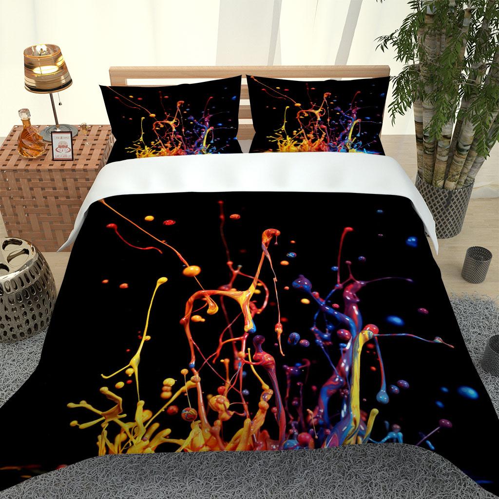Double Sheets Set 3 Pieces 3D Multicolour Pigment Art Bedding Set Quilt Duvet Cover Comforter Children Bed Birthday Gift