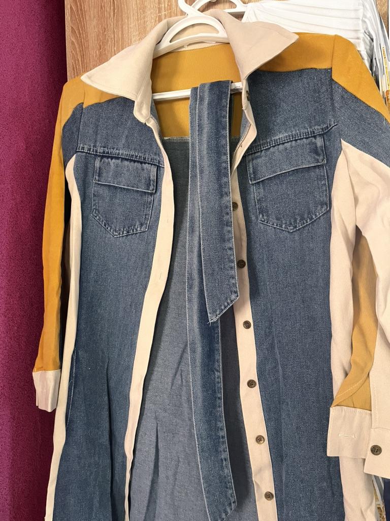 Lace Up High Waist Women 2025 Dresses Patchwork Denim Dresses Laple Long Sleeve Dress Femininos French Style Clothing
