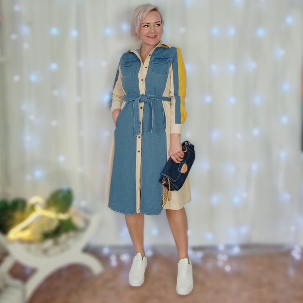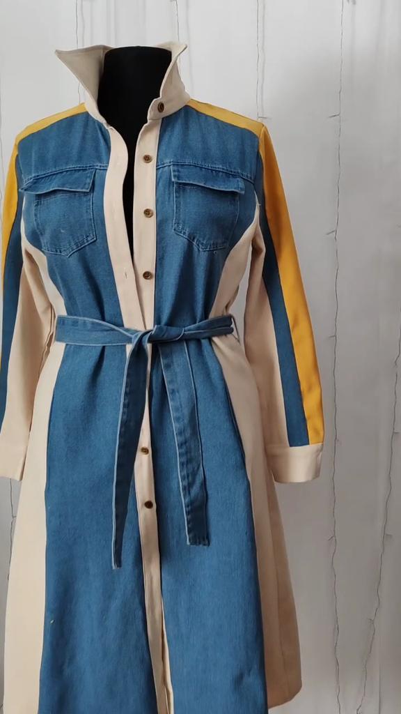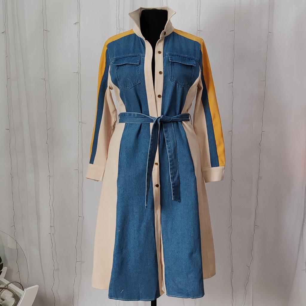 Lace Up High Waist Women 2025 Dresses Patchwork Denim Dresses Laple Long Sleeve Dress Femininos French Style Clothing — buy online with free worldwide shipping!