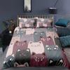 Cat Duvet Cover Polyester Pattern with Hipster Playful Feline Characters, Decorative 3 Piece Twin Bedding Set with 2 Pillow Sham