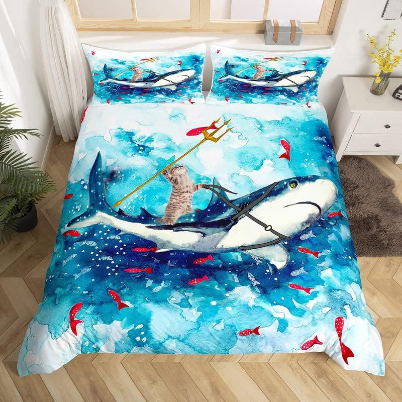 Cat Duvet Cover Set Watercolor Whale Fishing Bedding Set Ocean Sea Wave Comforter Cover Marine Nautical Themed Bedspread Cover — buy online with free worldwide shipping!