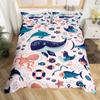 Cat Duvet Cover Set Watercolor Whale Fishing Bedding Set Ocean Sea Wave Comforter Cover Marine Nautical Themed Bedspread Cover