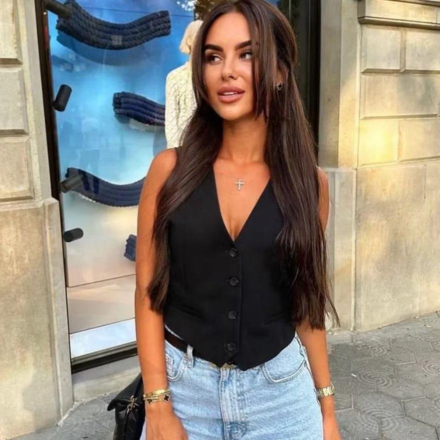 Women's Vest Black White Cropped Vest Top Women V Neck Sleeveless Vest Woman Fashion Working Summer Suit Vest Short Coats — buy online with free worldwide shipping!