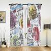 London Telephone Booth Curtains for Bedroom Living Room Drapes Kitchen Children's Room Window Curtain Modern Home Decor