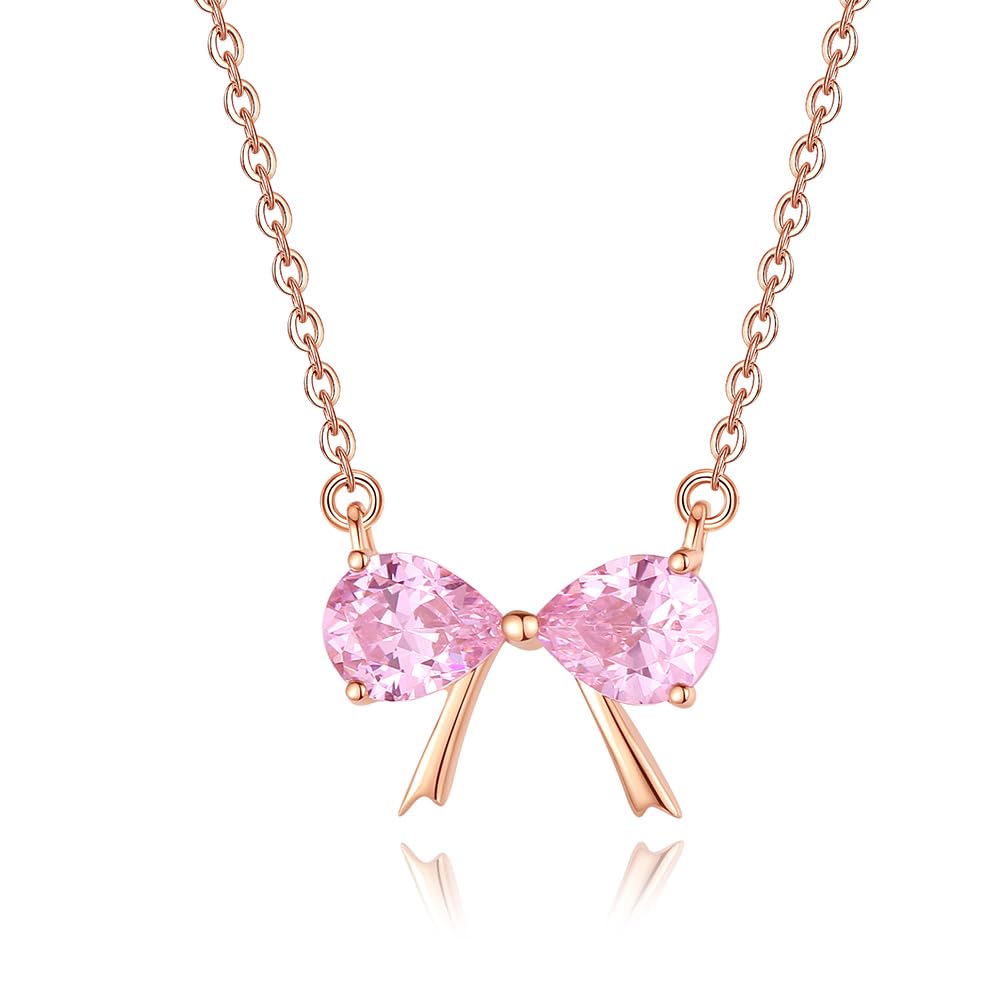 This necklace uses a popular fashion ribbon motif. As its shape suggests, it means ``tying'', so it has the meaning of ``tying bonds between people'' and ``tying happiness,'' and is said to deepen the bonds between people. Carefully inlaid with pink zirconia on the K18 gold base metal, it exudes a girlish atmosphere, and the small size will add elegance to any outfit, so you can wear it for any occasion.