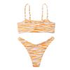 2 Pcs/Set Bikini Set Zebra Stripe Print Contrast Color Spaghetti Strap Adjustable Women Swimwear for Swimming