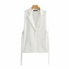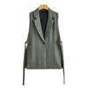 Women Vest Coat Turn-down Collar Sleeveless Loose Solid Color Single Button Cardigan Strap Decor Mid Length Commute Formal Suit Waistcoat