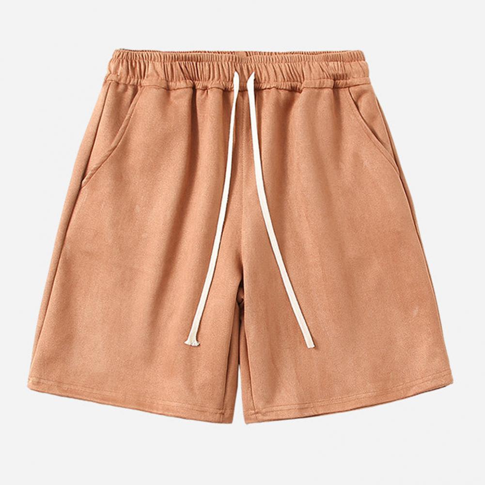 Men Summer Athletic Shorts Mid-rise Elastic Drawstring Waist Shorts Pockets Wide Leg Running Solid Color Suede Shorts — buy online with free worldwide shipping!