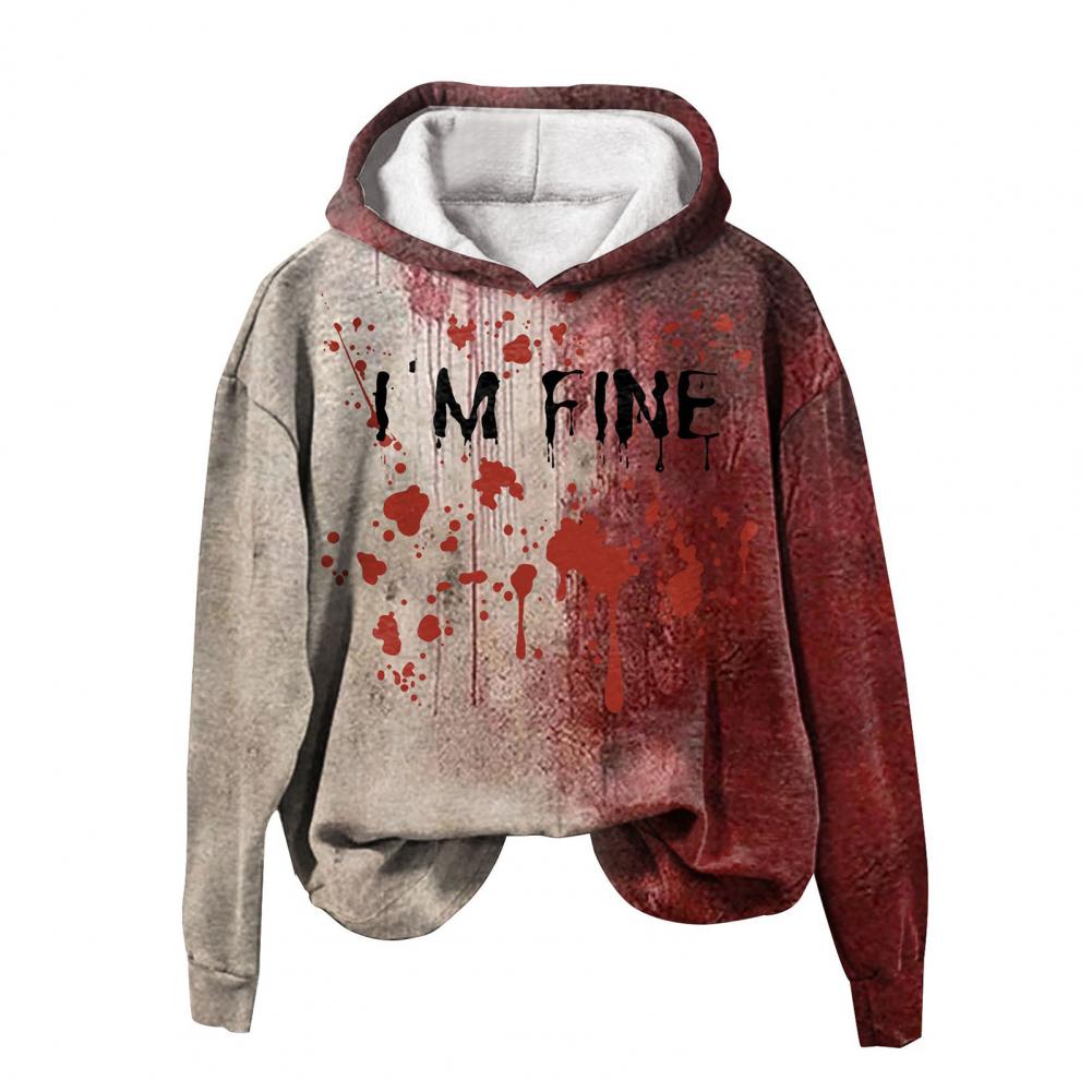 Unisex Hoodie Bloodstain Print Halloween Haunted House Cosplay Top Drawstring Hooded Pocket Long Sleeves Loose Hoodie