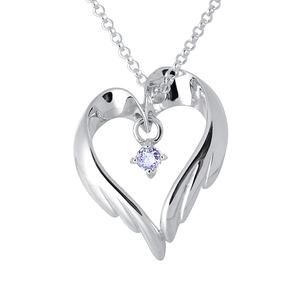 12 Birthstones to Choose from Heart Feather Silver Pendant Necklace [Future Angel] Women's (December Tanzanite) — buy online with free worldwide shipping!