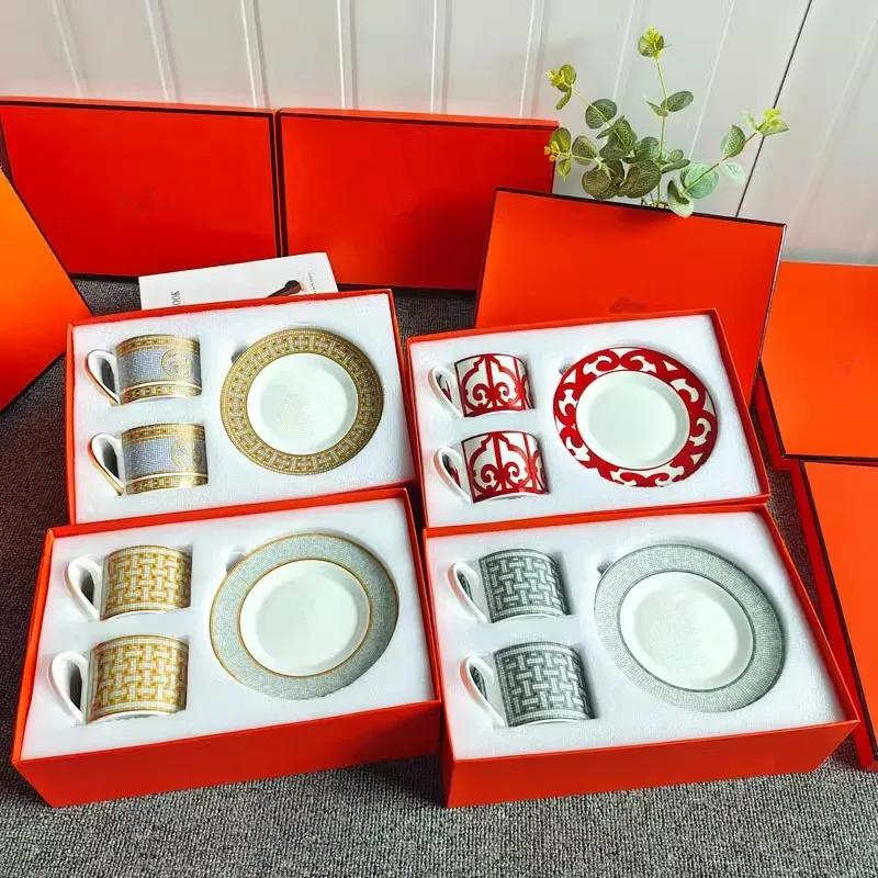 New European Bone China Coffee Cups And Saucers Tableware Coffee Milk Mug Plates Dishes Afternoon Tea Drinkware With Gift Box