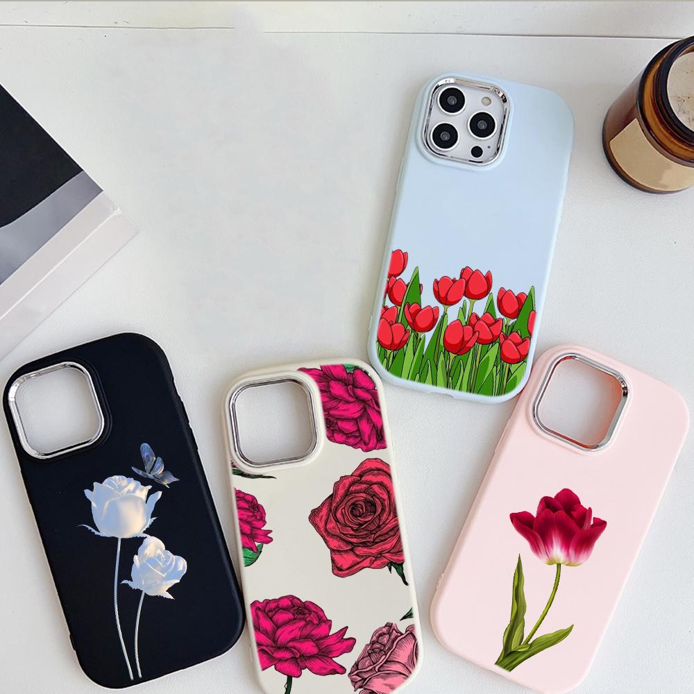 LZ16 Flower Soft Phone Case for Samsung S24 Ultra S23 Plus S21 FE A16 A54 A34 A05s A06 Infinix Hot 40 30i Lens Protection Shockproof Cover