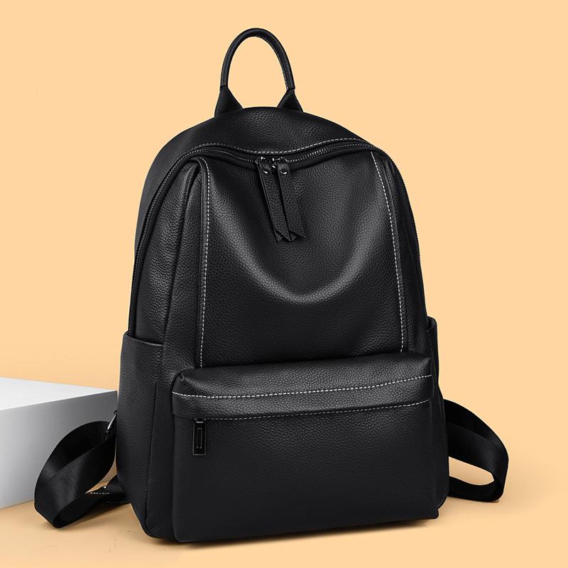 Soft Genuine Leather Feminine Large Casual Versatile Cowhide Shoulder Bags School Backpack Travel Multi-pockets