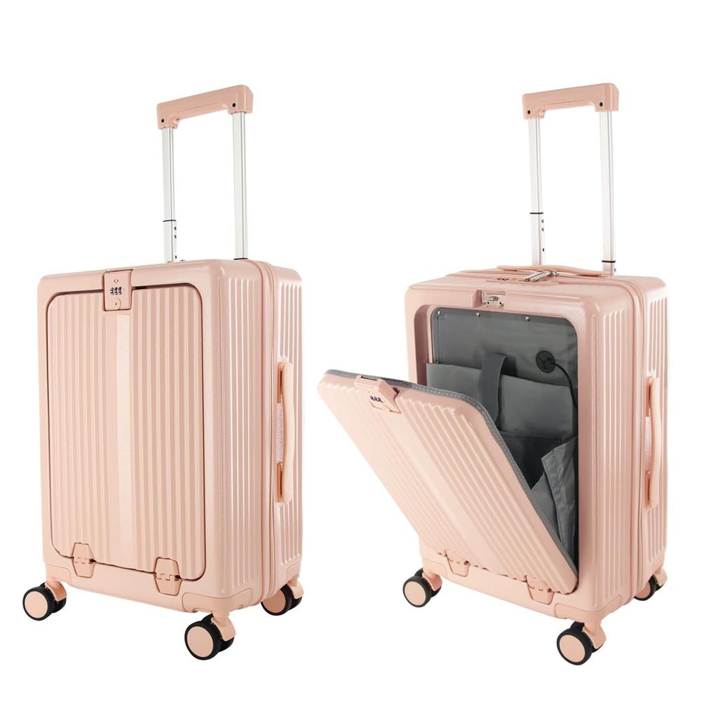 Front Carry One Touch USB Port Carry Top Includes Cup Computer Storage Charging Holder Quiet Double Travel Business Business [BINIDUCKLING] Suitcase,