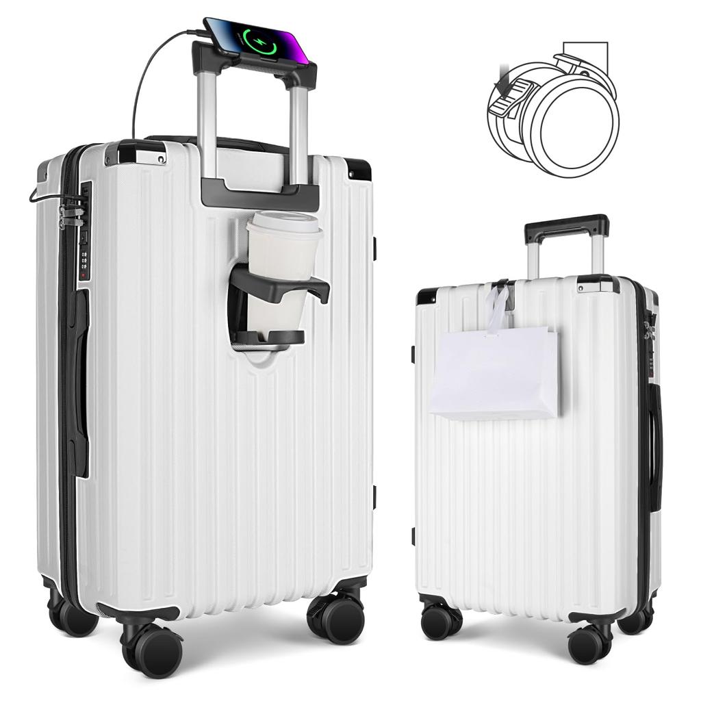 Suitcase Carry Case Carry Bag Shockproof Large Capacity Large Ultra Light Quiet Brake Function Double Casters USB Port Cup Holder Hidden Hook 360