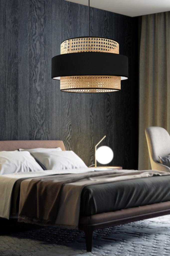 Bohemian Trio Metal Frame Real Rattan and Black Fabric Living Room Chandelier Three-Layer Cake Bedroom Pendant Lamp — buy products online with free worldwide shipping!