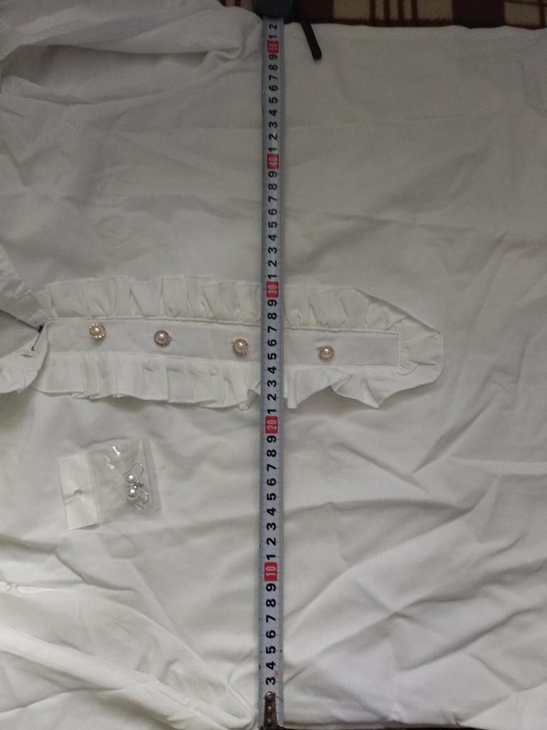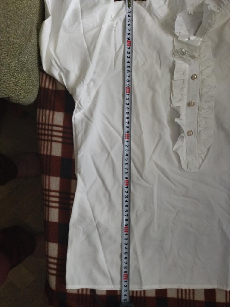 The blouse fit my size 46. I changed the buttons to match the color of the blouse, as the original ones cheapened it. It looks beautiful.