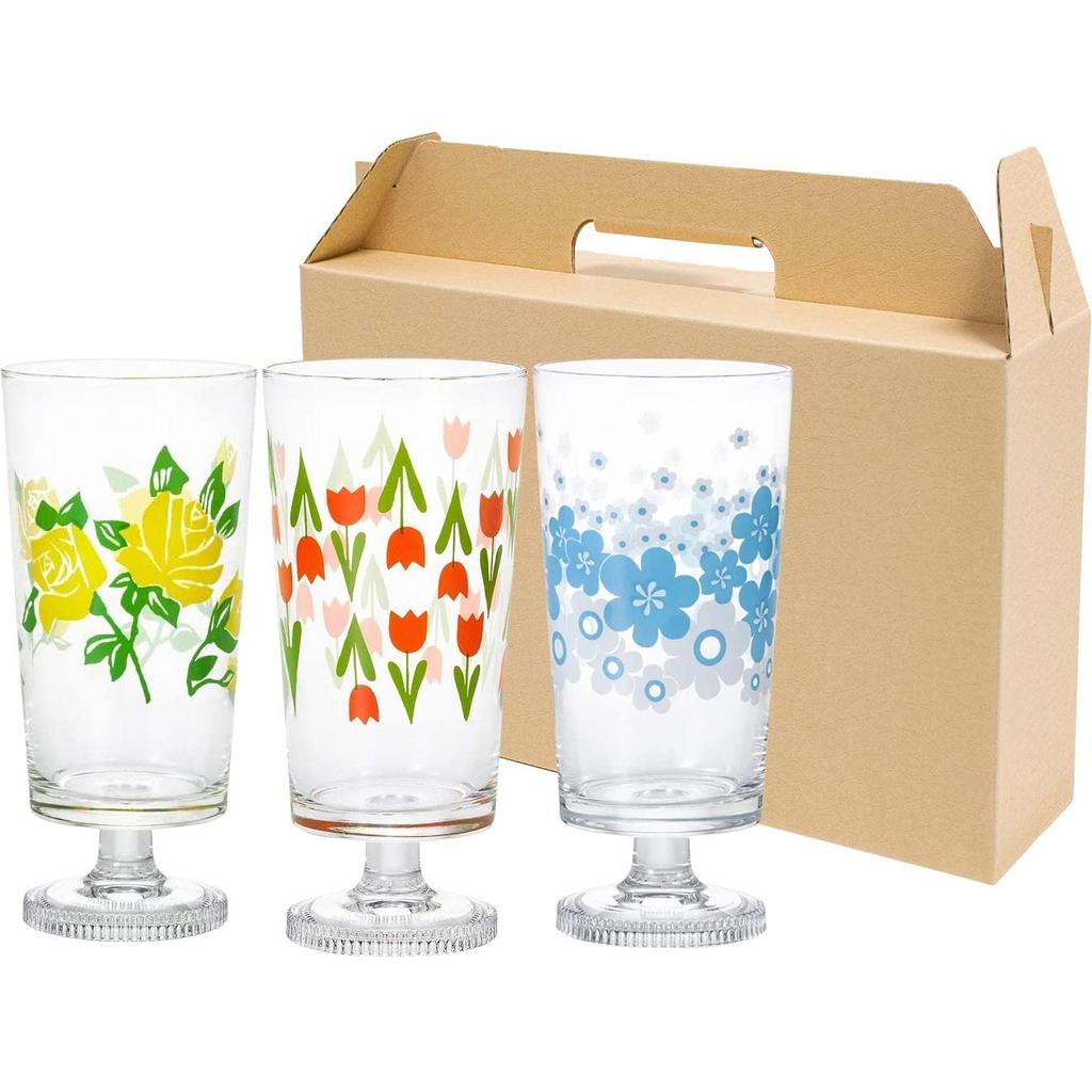 Adelia Retro Glass Tumbler legs 305ml 3 pattern assorted set Comes in a special craft box Made in Japan [With / / (Masquerade/Collec/Flower ring)] — buy online with free worldwide shipping!
