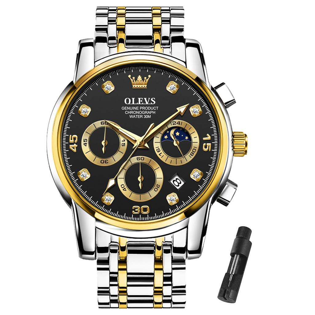 OLEVS watch Set contents: Men's watch, box, and instruction manual included. Men's wristwatch, casual, popular, multi-functional watch, drive system: analog quartz (battery included). Functional chronograph (24 hours, 60 minutes, 60 seconds); date display.