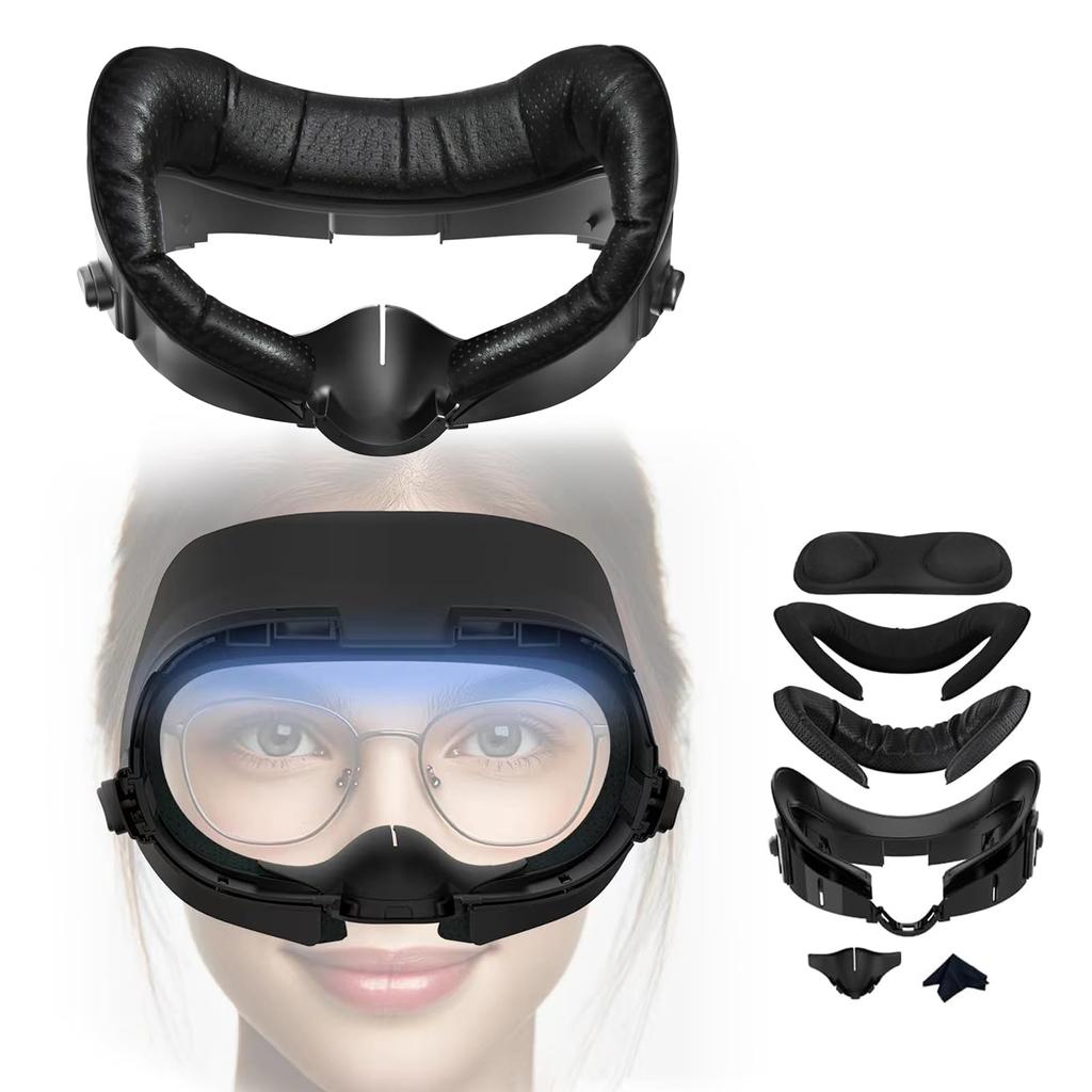 [With depth adjustment function] You can freely adjust the depth of the face cushion by adjusting the outside button, and there is no need to remove it. This feature provides an optimal fit on your face, the best viewing angle, and makes it comfortable to wear. It also fits gently even when wearing glasses, so you don't have to worry about it touching the lenses. By adjusting it to suit your face shape, you can achieve both the best FOV and comfort.