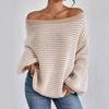 Women One-line Collar Straples Knitted Sweater Winter Autumn New Clashing Color Striped Lantern Long Sleeve Tops — buy online with free worldwide shipping!