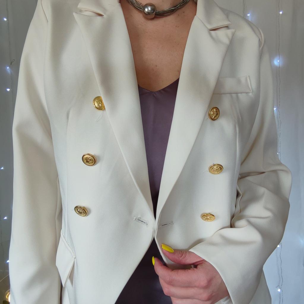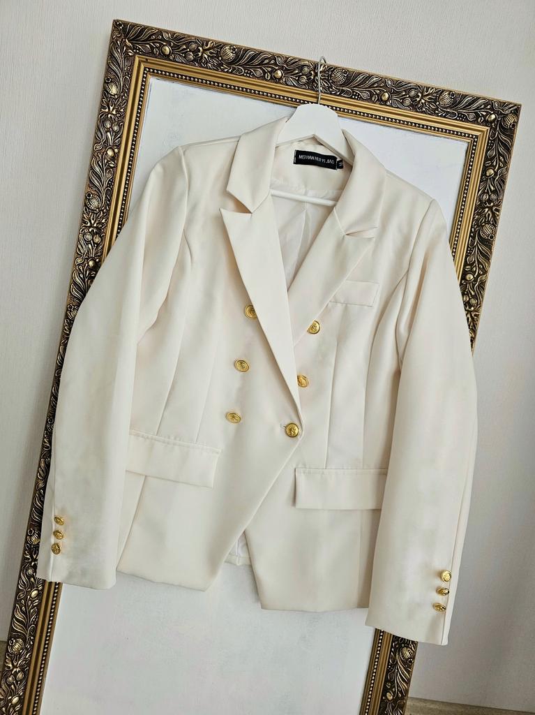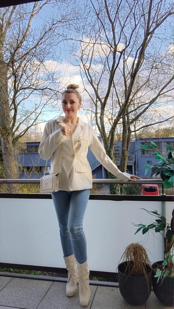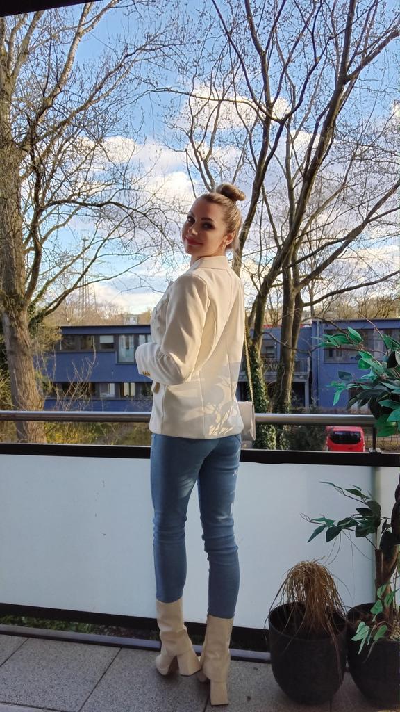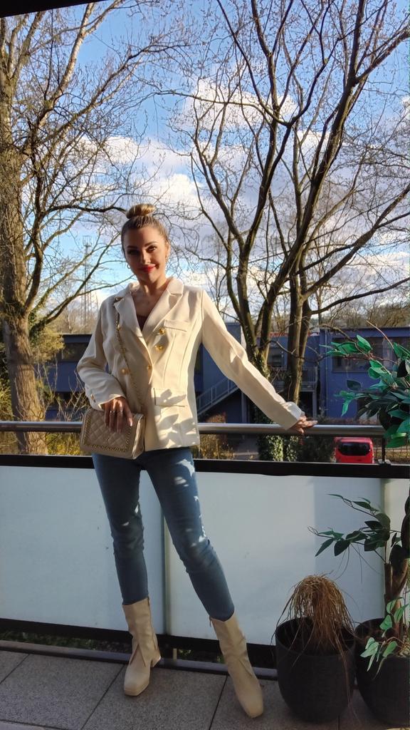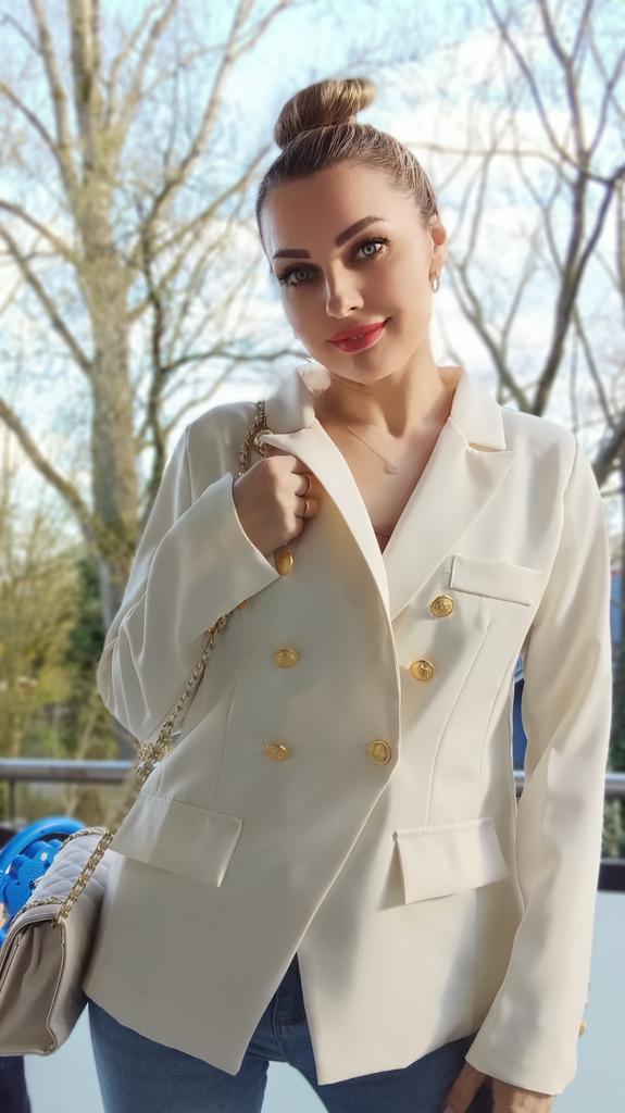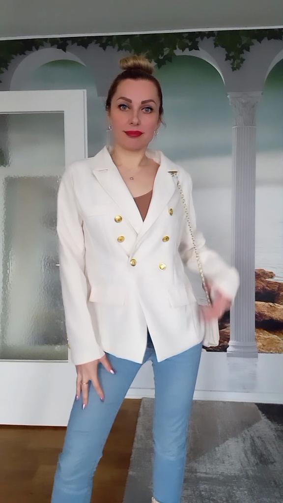 Beautiful blazer with buttons 🧥 🔆 🔆Delivery time 🔆: 19 days to Germany. 🔆Scope of delivery 🔆: Included in the delivery is a beautiful button-front blazer,🧥in the matching color and size. The product is available in 12 colors. It is available in sizes S to 3XL.. I ordered it in size L, and the blazer 🧥 is a bit big for me. The color is exactly as pictured! I normally wear a size 36. I weigh 55 kg and am 167 cm tall. My measurements are 90-65-90 cm. I thought it would run small, so I ordered two sizes larger. But it runs true to size. You have to order it in your original size.. 🔆Quality 🔆: The blazer is of excellent quality, casual, and opaque. I particularly like the great design and the color 👍👍👍🚀. Unfortunately, I can't say anything about the material composition because I don't understand what is written on the label. But on the manufacturer's website it says: 20% cotton. ☝🏻😘👍. I also got a little gift 🎁, a scarf. Thank you so much for that!🫶 ⬆️⬆️⬆️In summary, it is a beautiful blazer🧥 that has excellent quality 👍👍🔝and fits true to size. Thank you Joom and the seller! 5 stars! 🌟 I would happily recommend the blazer!👍🧥