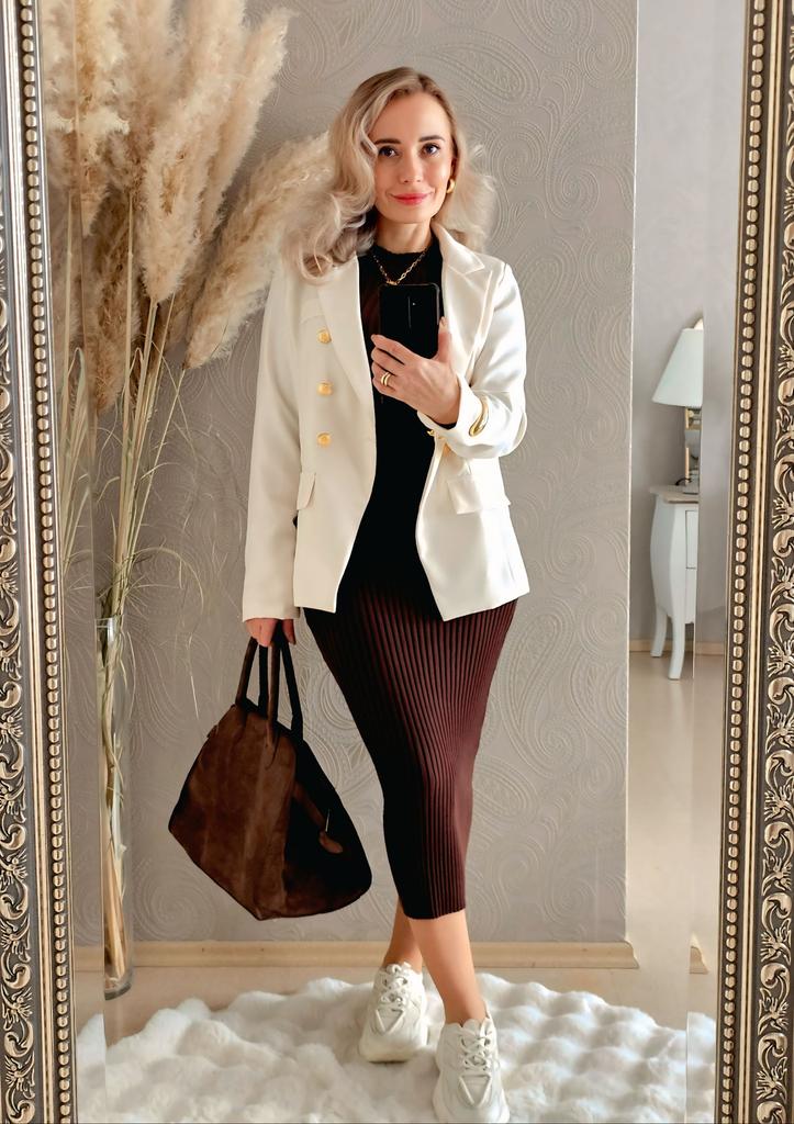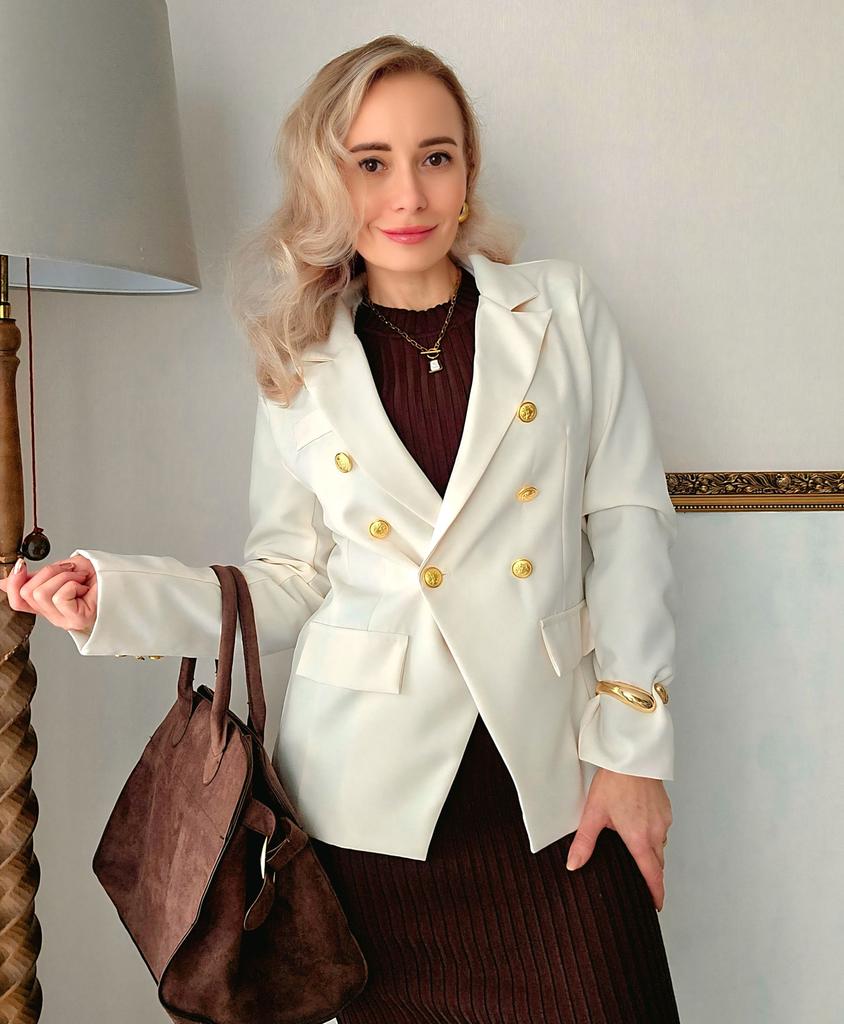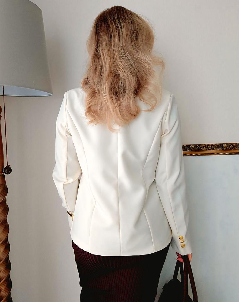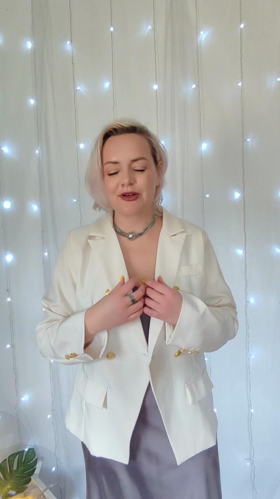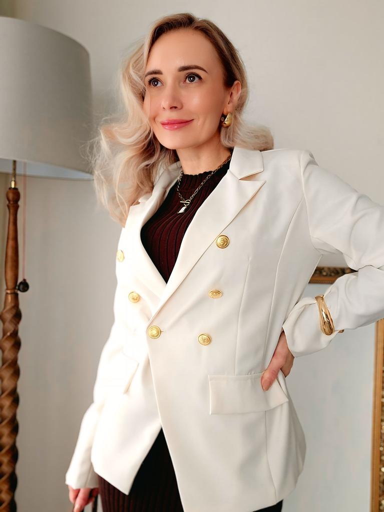 Beautiful blazer with buttons 🧥 🔆 🔆Delivery time 🔆: 19 days to Germany. 🔆Scope of delivery 🔆: Included in the delivery is a beautiful button-front blazer,🧥in the matching color and size. The product is available in 12 colors. It is available in sizes S to 3XL.. I ordered it in size L, and the blazer 🧥 is a bit big for me. The color is exactly as pictured! I normally wear a size 36. I weigh 55 kg and am 167 cm tall. My measurements are 90-65-90 cm. I thought it would run small, so I ordered two sizes larger. But it runs true to size. You have to order it in your original size.. 🔆Quality 🔆: The blazer is of excellent quality, casual, and opaque. I particularly like the great design and the color 👍👍👍🚀. Unfortunately, I can't say anything about the material composition because I don't understand what is written on the label. But on the manufacturer's website it says: 20% cotton. ☝🏻😘👍. I also got a little gift 🎁, a scarf. Thank you so much for that!🫶 ⬆️⬆️⬆️In summary, it is a beautiful blazer🧥 that has excellent quality 👍👍🔝and fits true to size. Thank you Joom and the seller! 5 stars! 🌟 I would happily recommend the blazer!👍🧥