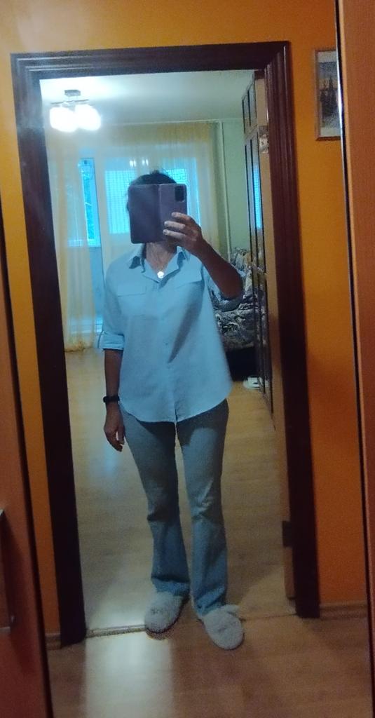 The shirt is pretty when ironed, but the fabric wrinkles quickly, loses its shape when worn for a few hours, and starts to look cheap. The price is clearly too high.