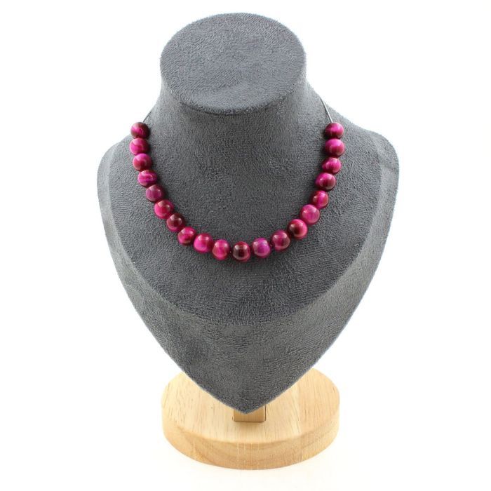 Stones and Minerals. Necklace 20 Fuchsia Tiger Eye Beads 8 Mm. Steel Chain Necklace Women, Men. Customizable Size.