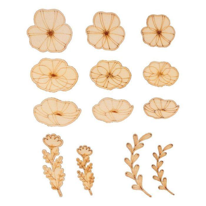Silhouettes en bois - Artemio - Mon Essentiel - 21 Fleurs - Naturel - 30 à 50 mm