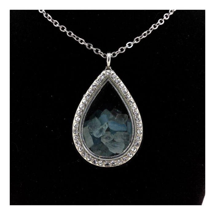 Pierres et Minéraux. Collier Aigue-Marine brut. Modèle goutte.