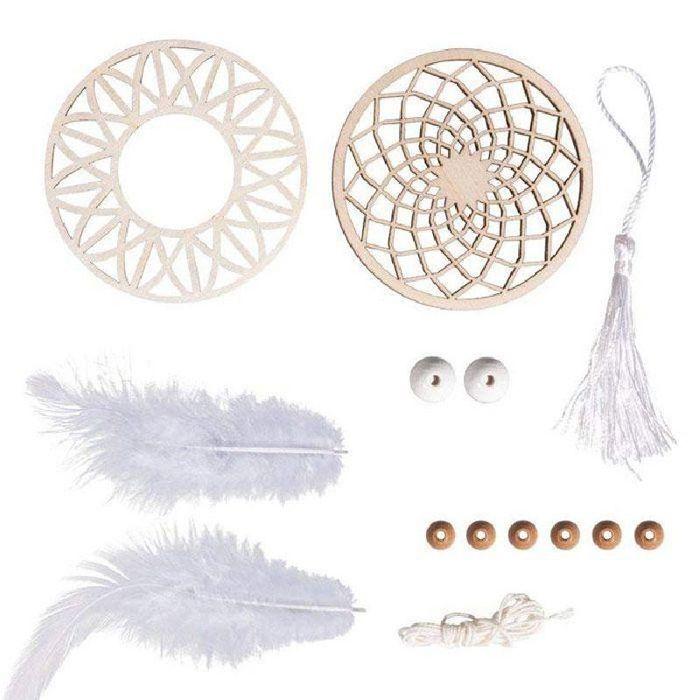 DIY Dreamcatcher Kit - Rayher - 26 cm x 7 cm - 2 wooden discs - 6 natural beads - White feathers — buy online with free worldwide shipping!