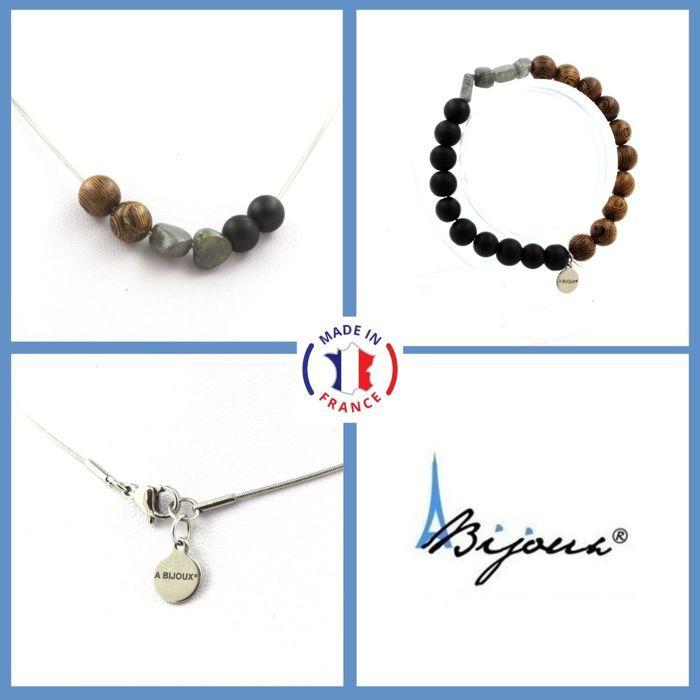 Stones and Minerals. Jewelry Set Bracelet Necklace Wooden Beads + Matte Black Onyx + Customizable Size.