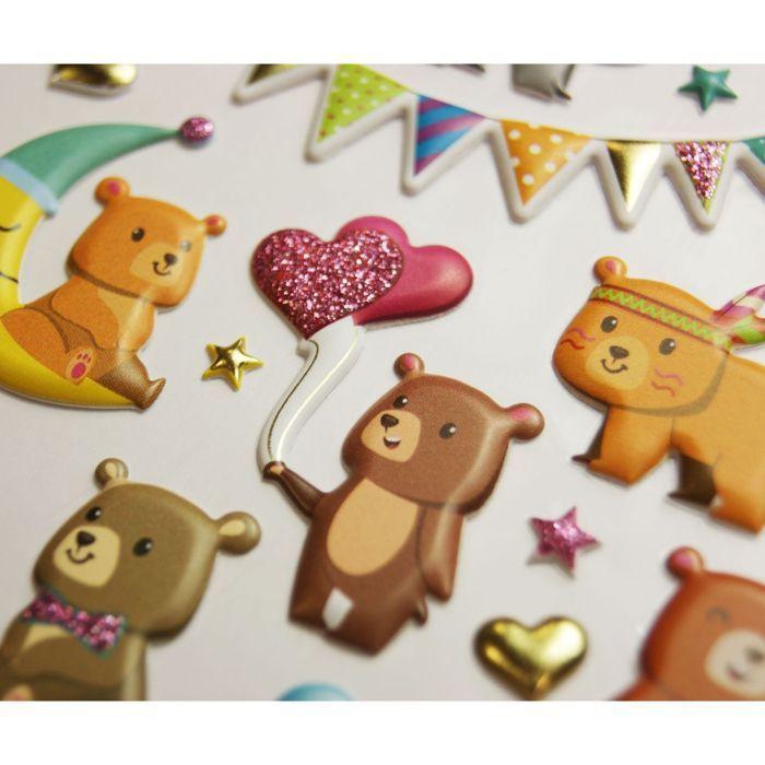 Reusable Stickers - 3D Relief - Party Bears - Glitter — buy online with free worldwide shipping!