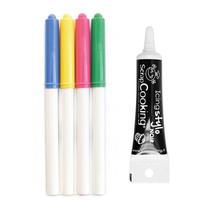 4 Food Markers Yellow, Green, Pink, Blue + Black Icing Pen
