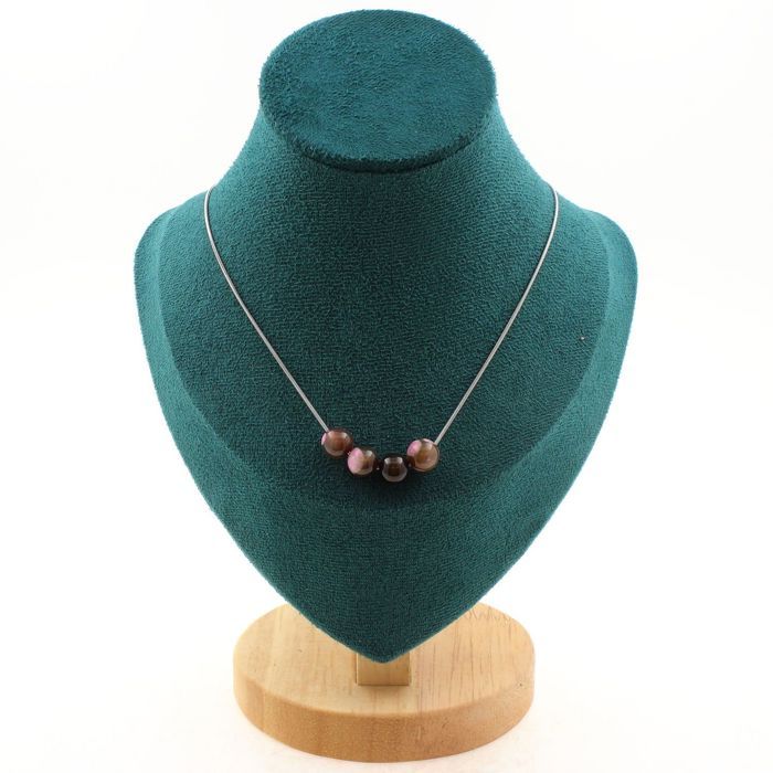 Stones and Minerals. Necklace 4 fuchsia and brown Agate beads 8 mm. Steel chain necklace women, men. Customizable size. — buy online with free worldwide shipping!