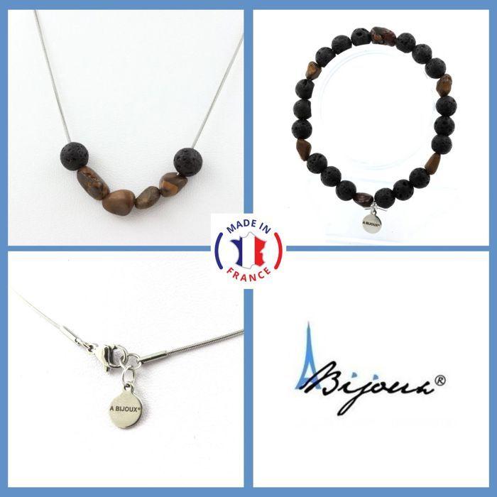 Stones and Minerals. Jewelry set Bracelet Necklace Pearls Australian Boulder Opal + Lava Customizable size. — buy online with free worldwide shipping!