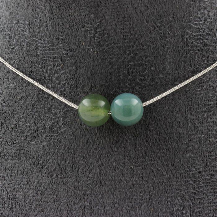 Stones and Minerals. Necklace 2 pearls Moss Agate 8 mm. Stainless Steel Chain Necklace Women Men. Customizable size. — buy online with free worldwide shipping!