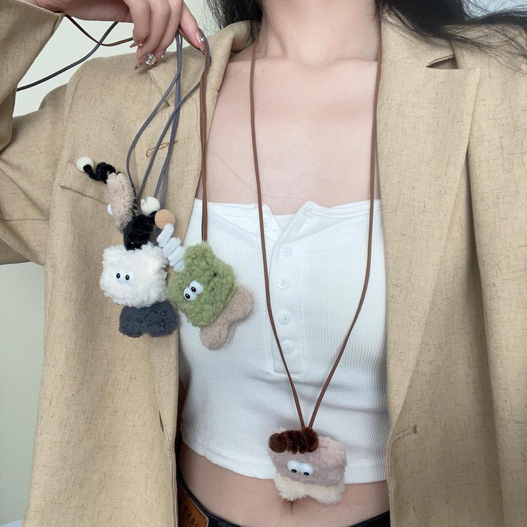 Cartoon Cute Twist Stick Plush Pendant Necklace – Heart Sweater Chain for Girls