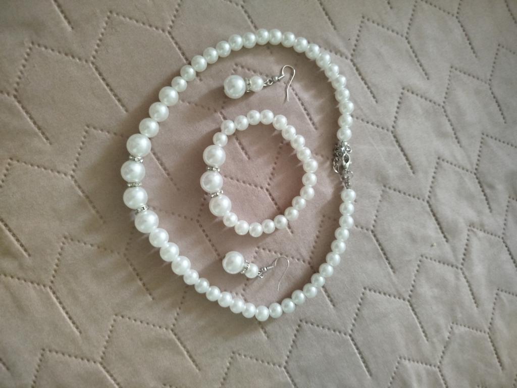 Elegant Pearl and Diamond Jewelry Set: Necklace, Earrings, Bracelet – Simple and Fashionable for Everyday Wear — buy online with free worldwide shipping!