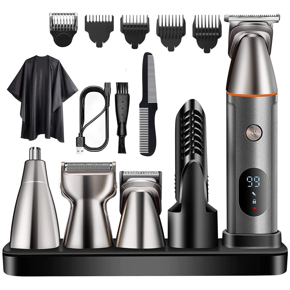 [Package contents] Package contents: Main unit x 1, cleaning brush x 1, hair brush x 1, hair clipper x 1, power trimmer x 1, nose hair cutter x 1, body hair trimmer x 1, adjustable attachment (for power trimmer only) x 1, length adjustment attachment (3mm/6mm/9mm/12mm) x 4, charging stand x 1, USB charging cable x 1, instruction manual/warranty x 2.