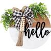 Hello Door Wreath for Front Door Spring Wreath 30cm Farmhouse Door Sign Decoration for Window Decoration Outdoor Front Door Home Decor