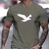 2024 Summer New Men's Simple Fashion Loose T-Shirt Eagle Print Round Neck Solid Color Short-Sleeved T-Shirt Casual Daily Tops