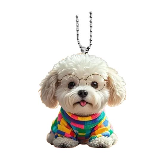 Cute Puppy Pendant Car Mirror Hanging Ornament Acrylic Dog Keychain Christmas Tree