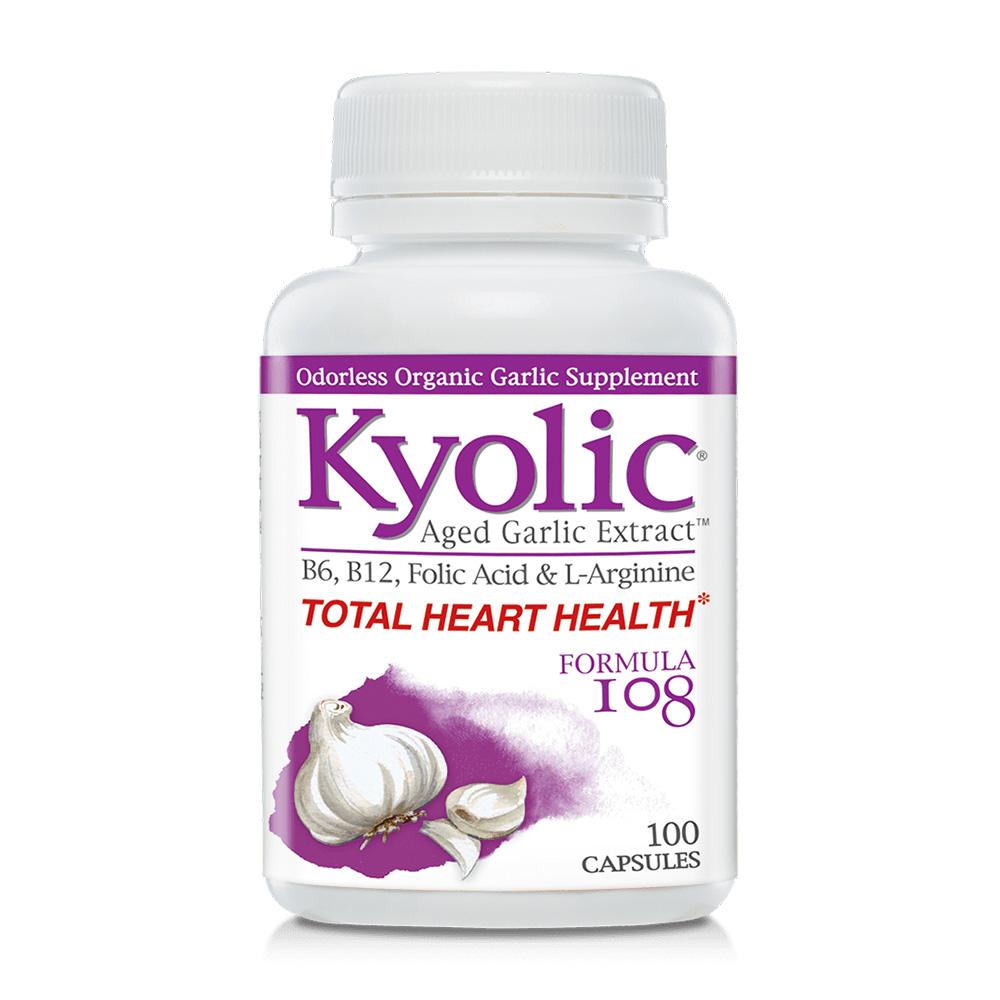 Kyolic® Aged Garlic Extract™ begins with 100% organically grown garlic from California. It is then aged to perfection in a unique extraction process to eliminate odor and create beneficial compounds found only in Kyolic. Kyolic 108 formula holds a patent for its ability to reduce homocysteine levels.* It also supports healthy cholesterol and blood pressure levels, which are already within normal ranges, and circulation for Total Heart Health.*