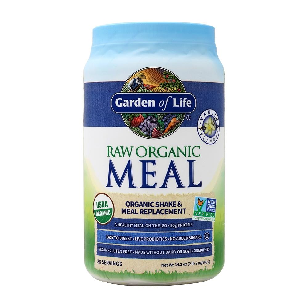 Raw Organic Meal is a delicious organic MEAL-ON-THE-GO packed with incredible nutrition to help you satisfy hunger, manage weight and feel great! Raw Organic Meal uniquely combines the goodness of multiple Garden of Life products in one complete raw organic meal replacement. Basically, it has the nutrition of seven products in one container! Raw Organic Meal delivers 20 grams of clean protein per scoop from 13 raw sprouted ingredients, along with greens, healthy fat, 2 g of Organic Fiber, probiotics, enzymes, plus 21 vitamins and minerals.