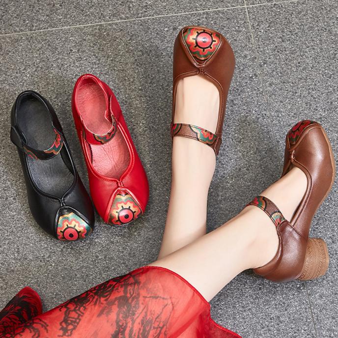 Shoes Women's Shoes Cowhide Chunky Heel Soft Bottom Non-slip Leather Shoes Ethnic Single Shoes — buy online with free worldwide shipping!